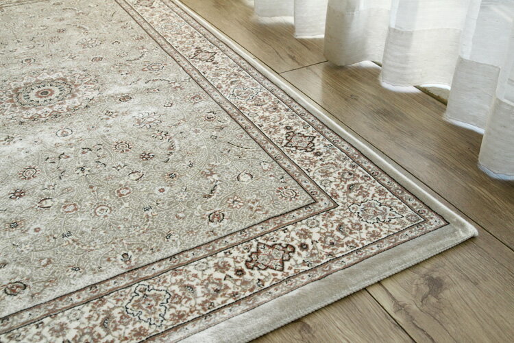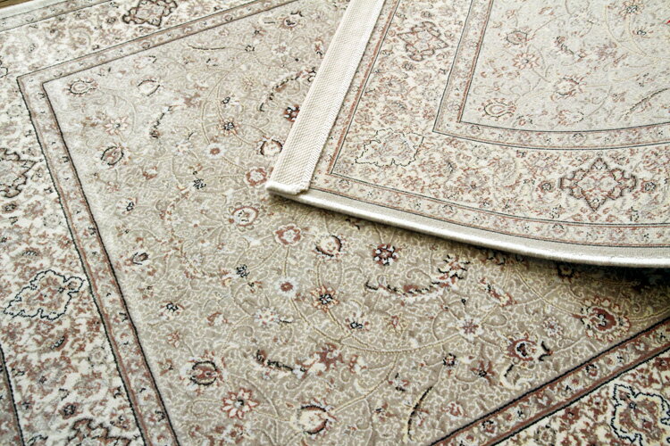 デザインは伝統のメダリオンタイプで、細部にわたるきめ細かなデザインや質感はペルシャの一流工房の手織り絨毯にも劣らない高級感と存在感があります。