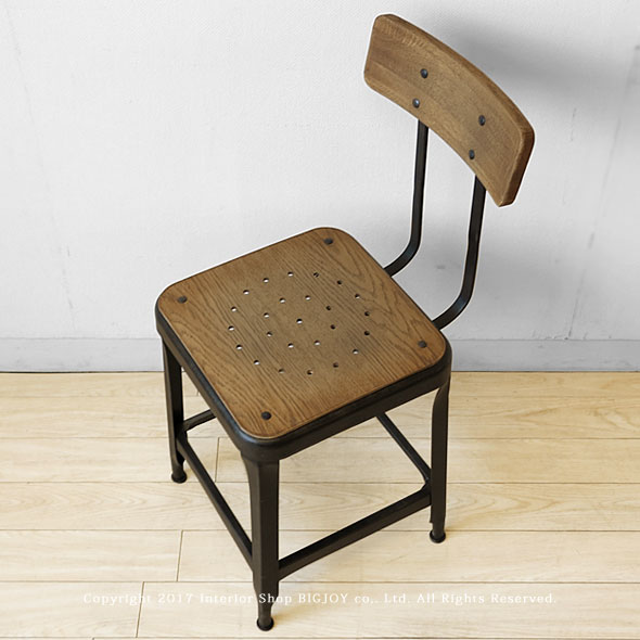 ダイニングチェア ナラ材とサビ加工を施したヴィンテージ風のスチールを組み合わせたカジュアルなスタイルのダイニングチェア。