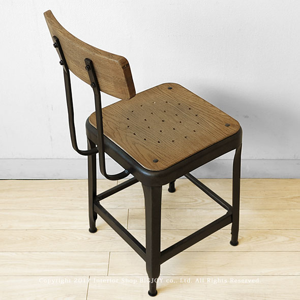 ナラ材 スチールフレーム サビ加工 ヴィンテージ加工 アイアン ダイニングチェア カジュアル ブラック