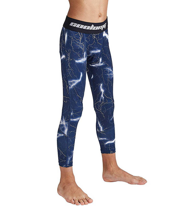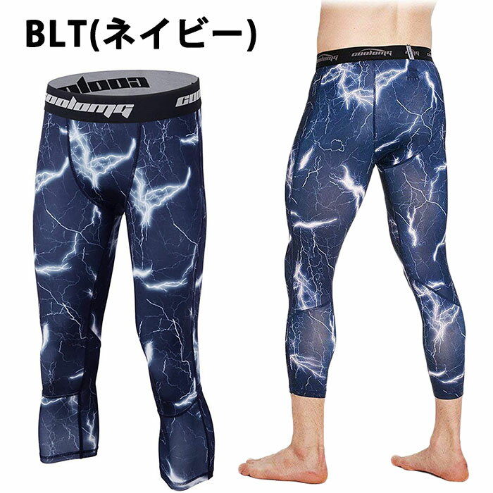 【送料無料(沖縄・離島を除く)】 スポーツタイツ 加圧 スパッツ メンズ キッズ 七分丈 レギンス コンプレッションタイツ フィットネス 加圧インナー 稲光柄 ブラック ブルー インナータイツ 小さいサイズ